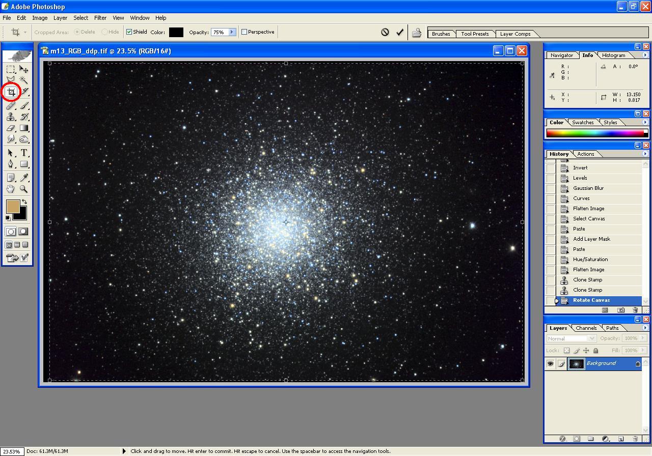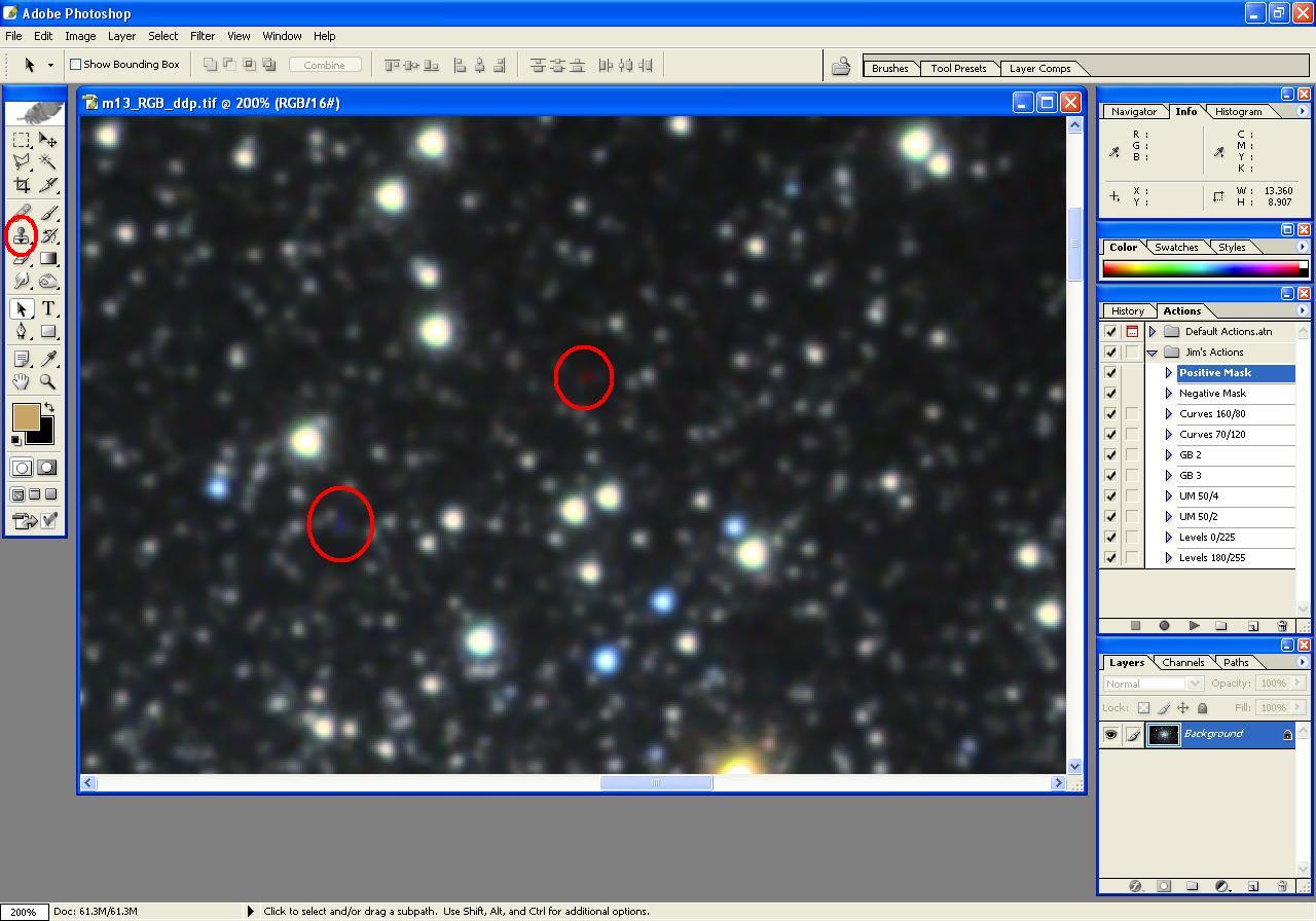 The following steps illustrate the processing of an image of m13, beginning with