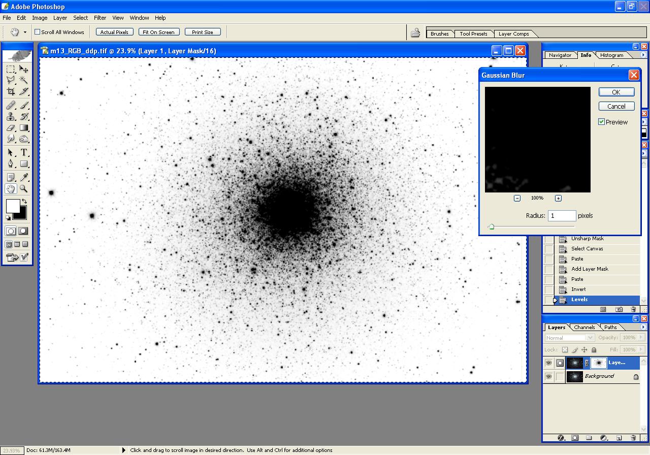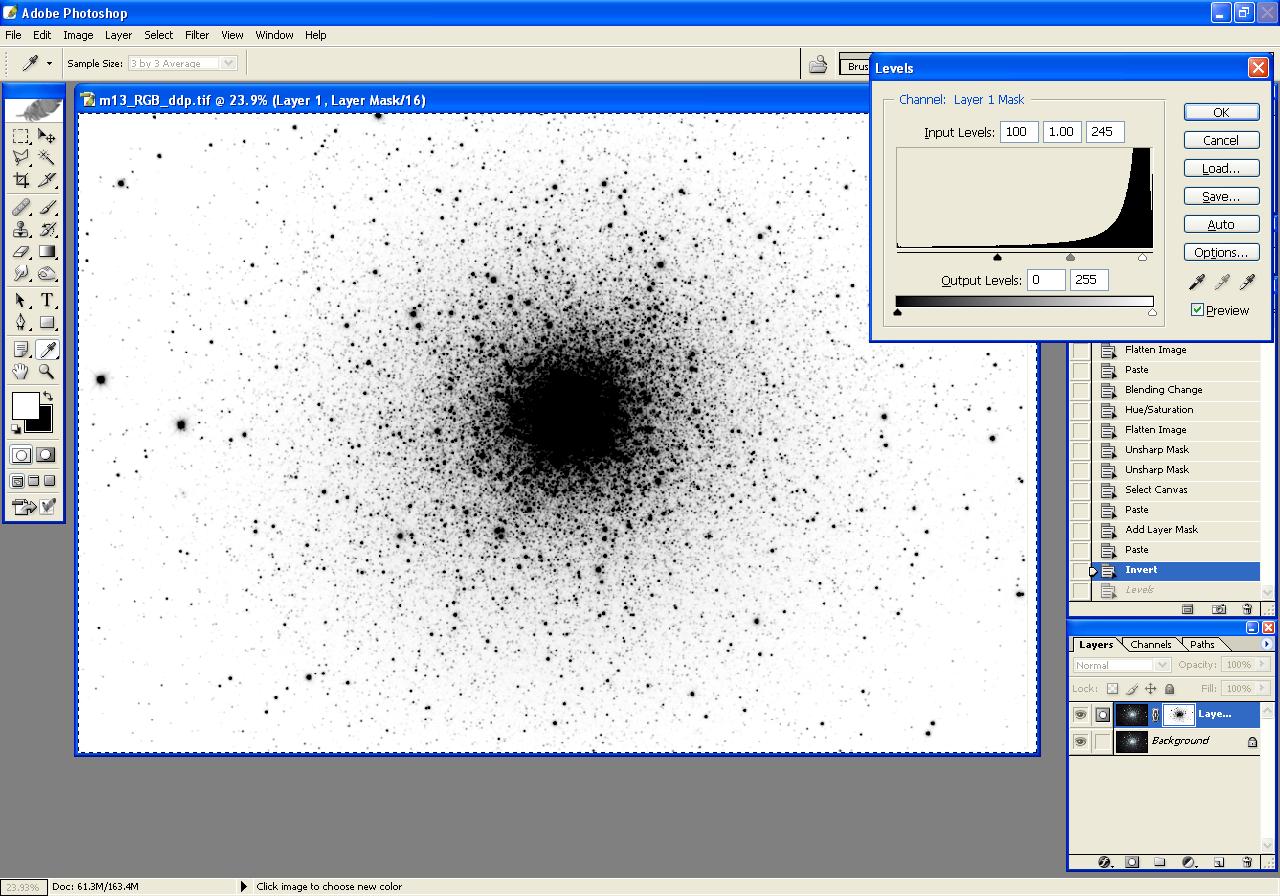Step 4: Load Luminance into Photoshop, Reduce Background Noise using Inverted Layer Mask