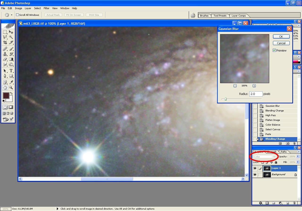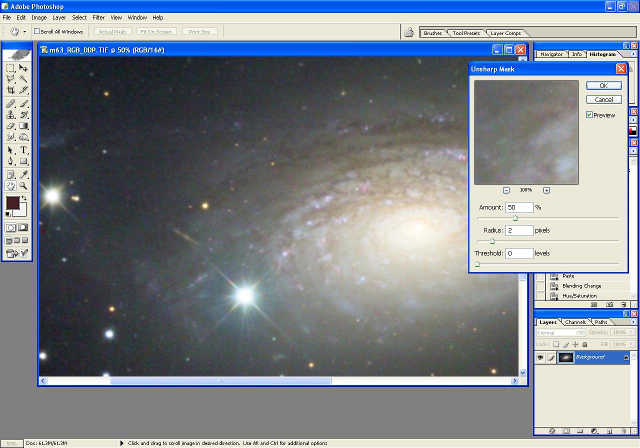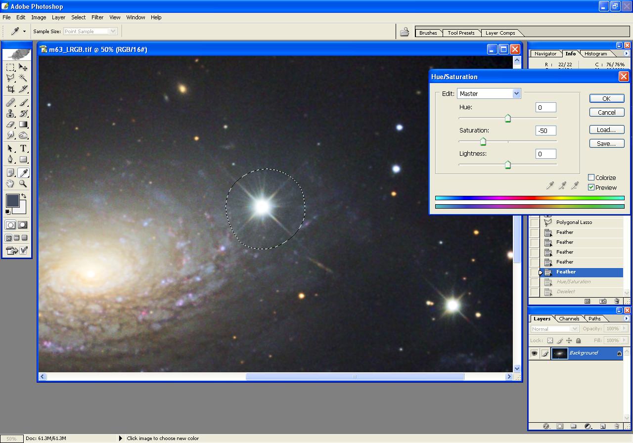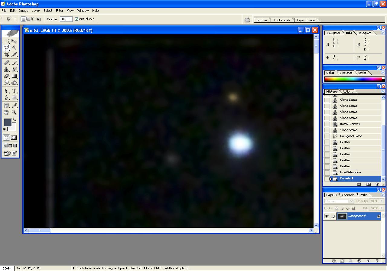 The following steps illustrate the processing of an image of m63, beginning with