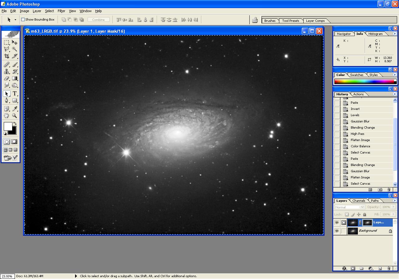 Load the non-linear stretched Luminance frame into Photoshop.