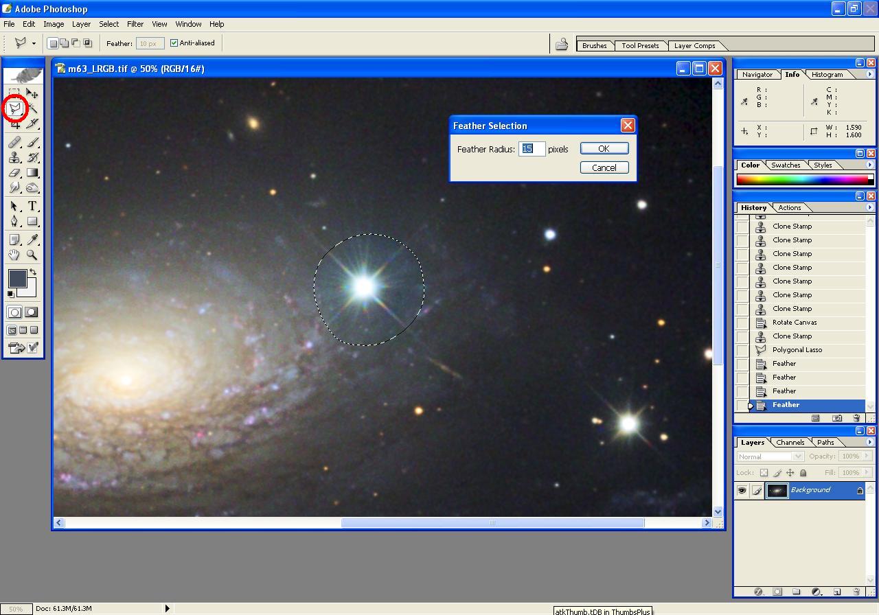 Using the Polygonal Lasso Tool (circled in red at left in image), encircle the blue star halo