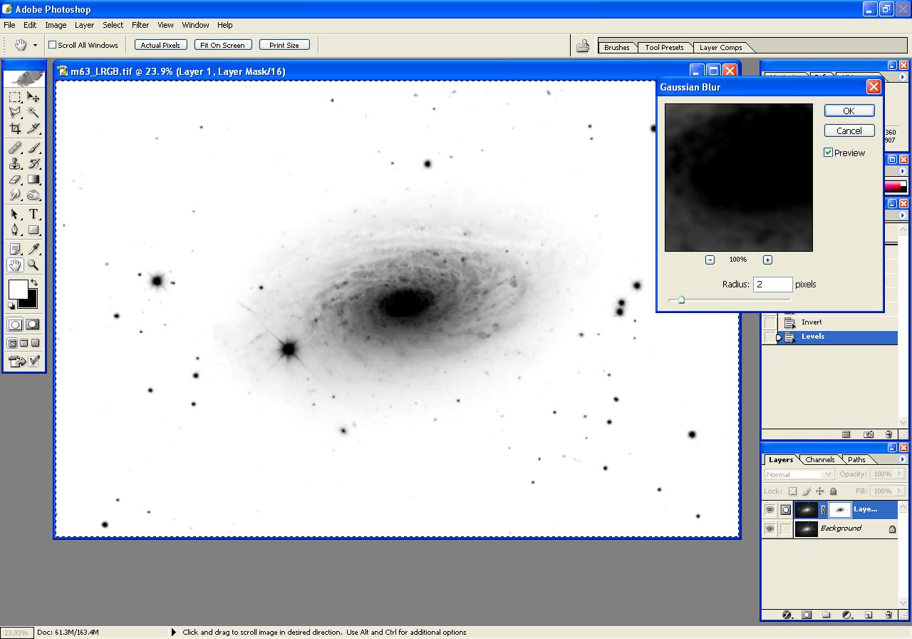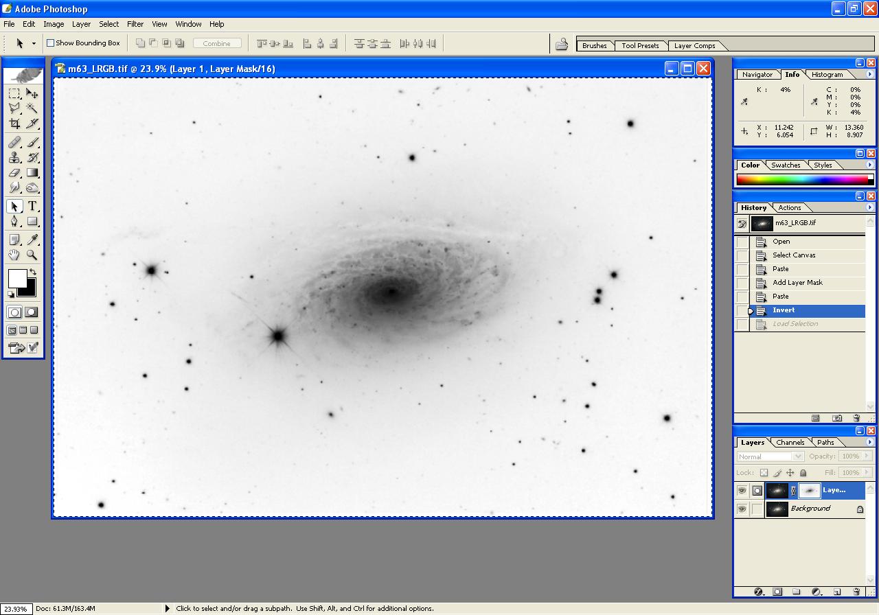Step 4: Load Luminance into Photoshop, Reduce Background Noise using Inverted Layer Mask