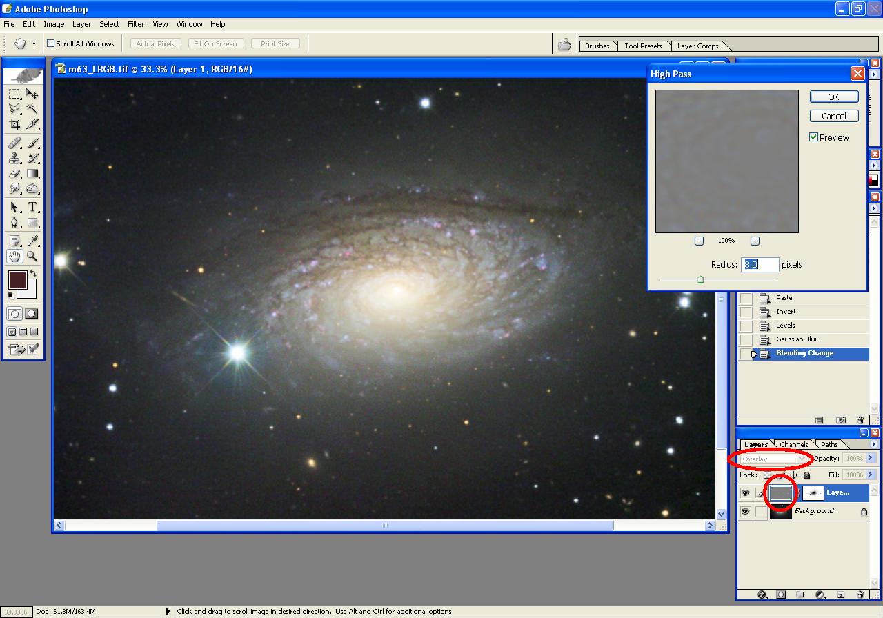There appears to be some lovely detail in the dark lanes in the galaxy, so we'll do a High Pass Filter