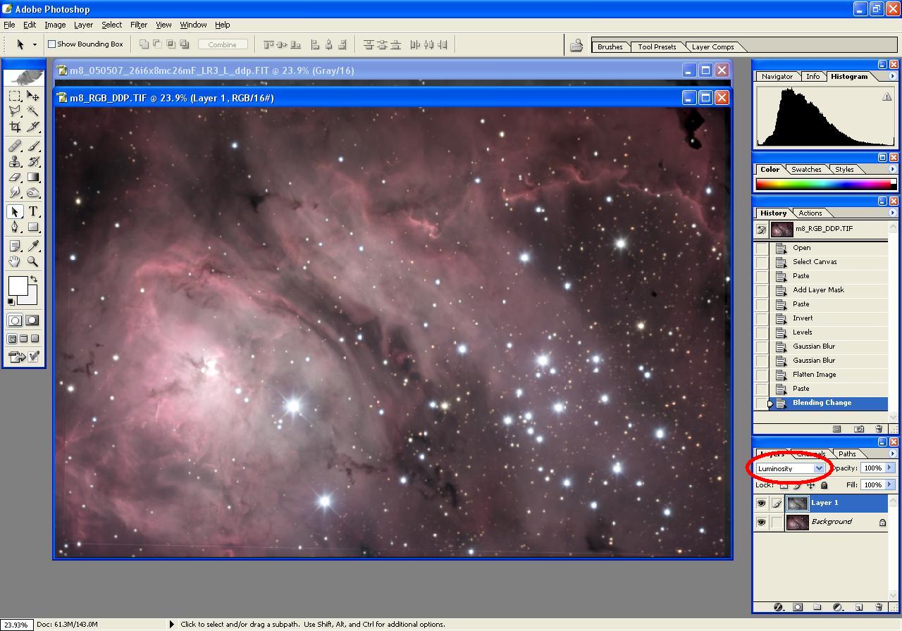 Step 7: Merge Hydrogen-Alpha/Luminance image into RGB image